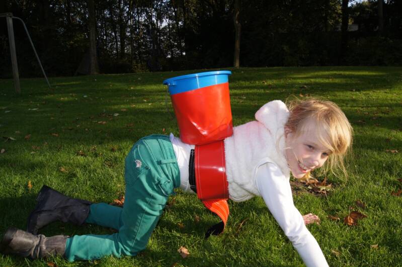 Een uniek en onmisbaar onderdeel van een zeskamp, of ander spelletjesprogramma. Of het nu gaat om een kinderfeestje, een dorps- of wijkfeest of een bijeenkomst om het team van een bedrijf (meer) op één lijn te krijgen: het kamelen race spel is een vast onderdeel van zo’n feest- of teambuildingsevenement. Het is voor jong en oud geschikt. Op de rug kun je de emmer vullen met water (of ballen) dan ga je al kruipend een parcours afleggen en aan het einde van het parcours staat dan een bak waar je je emmer kunt legen. het team waar het meeste in de bak zit aan het einde van het parcours heeft gewonnen !